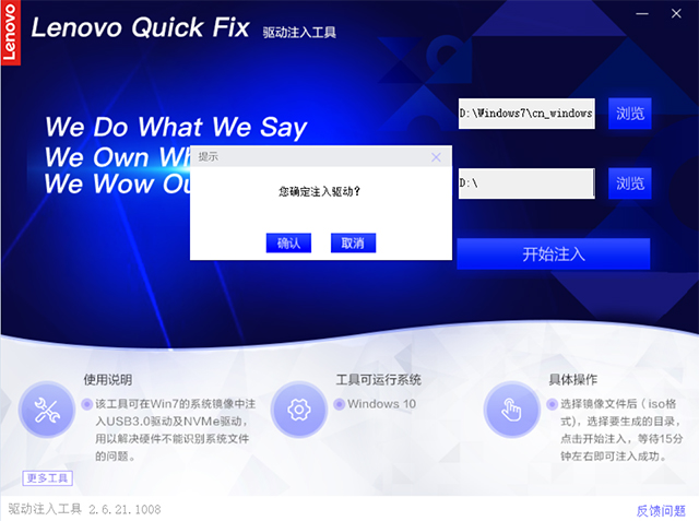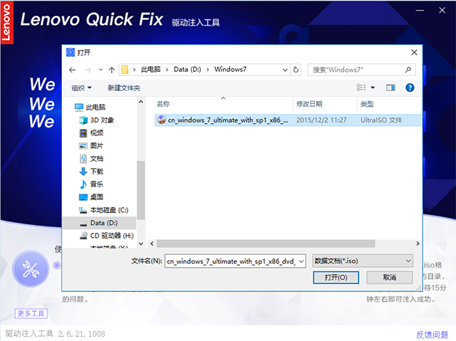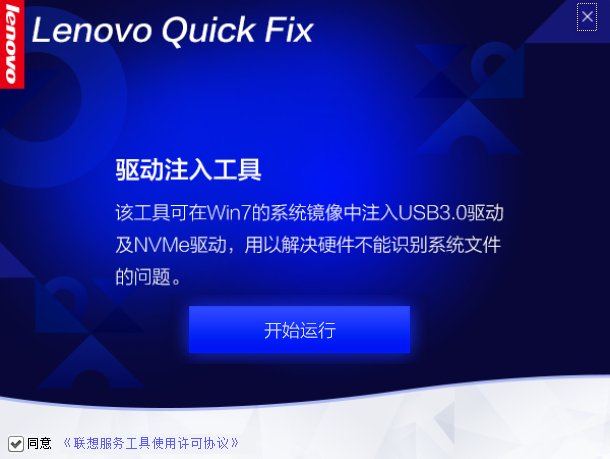 1、打开联想驱动注入工具,点击开始运行后,选择要注入驱动的Windows 7系统ISO镜像。