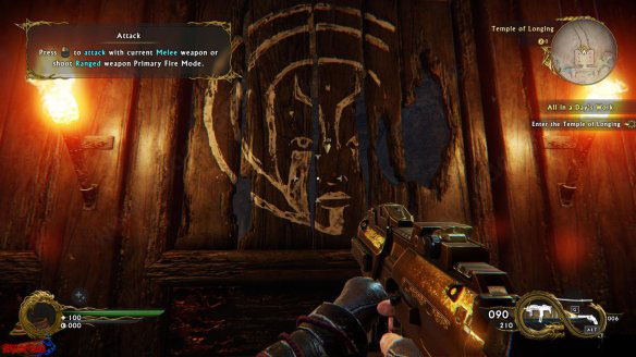 二、来到[神秘神器|Mysterious Artifact]处,王洛拿起后,却不慎掉落,滚到了一旁寺庙护卫旁边,随即进入战斗。守卫属于精英敌人,生命值掉落至一定程度后,施放绝对防御,通过锁链控制一些小怪攻击,需要将全部小怪消灭后才能继续对精英敌人造成伤害,之后出现的精英怪大多数都会这个技能,不再赘述。