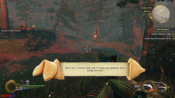 [幸运饼干|Fortune Cookie],通常出现在区域边缘处,也有可能在箱子中掉落,获取后可以看到[古老的智慧|ancient wisdom]。