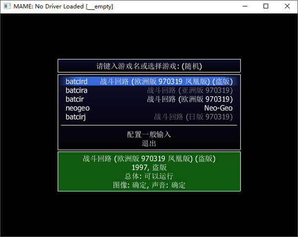 3、然后任意选择一款“战斗回路”的文件后回车确认,并输入“O”“K”进入游戏,然后按下2键投币,1键开始游戏。
