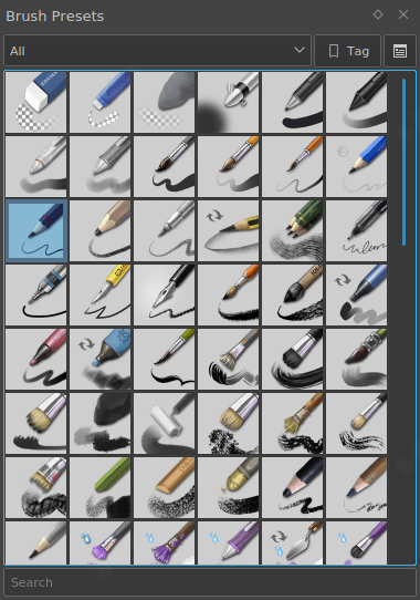 除了一般的颜料图层外,Krita 还支持矢量图层、滤镜图层、分组图层和文件图层等多种图层类型。你可以对图层进行排序、分组、合并、平整等操作,让它们变得井井有条。Krita 备有三种不同的视图用于查看图层。