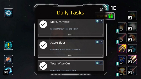 游戏中有好多行星可以炸,像地球、火星这些你熟悉的星球,还有各种超酷的武器可以选择。每次摧毁行星的时候还能旋转视角,看整个爆炸的过程,那种震撼感真的让人热血沸腾!特别是加上震动模式,感觉自己就像个真正的宇宙破坏者一样。