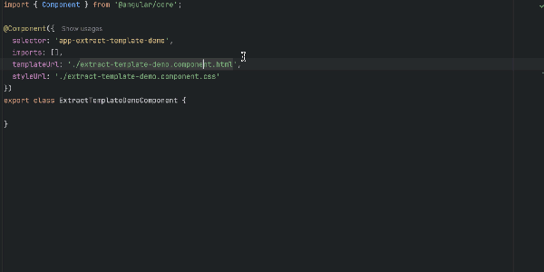 WebStorm 现在简化了 Angular 组件中内联和单独模板之间的重构。 只需一个快速操作,您就可以在内联模板和单独的文件 (templateUrl) 之间转换,简化工作流并改善代码组织。
