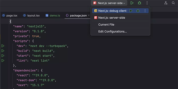 WebStorm 现在会自动为 Next.js 项目生成运行配置,使全栈应用程序更易设置和调试。