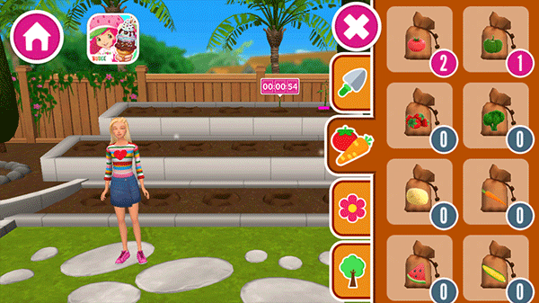 除了基本玩法,游戏还有丰富的美食系统,玩家可以学习制作各种食物,从蔬菜沙拉到披萨应有尽有。此外,还能种植植物获取种子,解锁更多内容。游戏中的角色和场景设计都很有趣,特别是能与芭比和其他角色一起体验日常生活,让人感到放松。