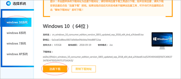 进入原版系统下载页面,选择自己想要安装的系统,我们以win10系统为例,选择下载,如图: