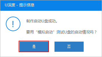 u盘启动盘制作完成后,会弹出新的提示窗口,对此我们点击“是”对制作完成的u盘启动盘进行模拟启动测试,测试u盘启动盘是否可用,如图所示:
