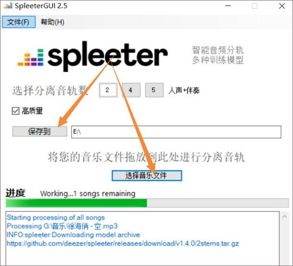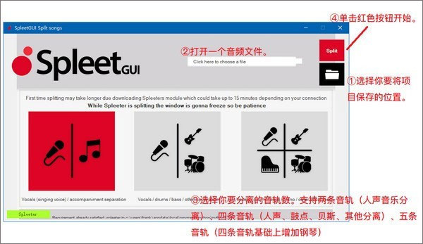 使用python 3.10.10和spleeter 2.4重新构建,更新了GUI。