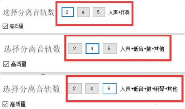 还可以选择需要分离的音轨数,但是一般只需选择第一个人声+伴奏分离即可,无需细分;