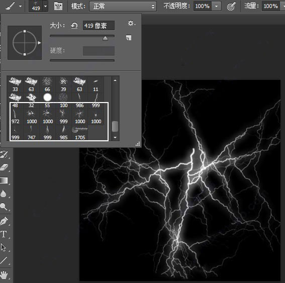4、找到最后的画笔就是ps闪电效果笔刷,有多种类别,用户可以调整大小直接放在图片上使用。