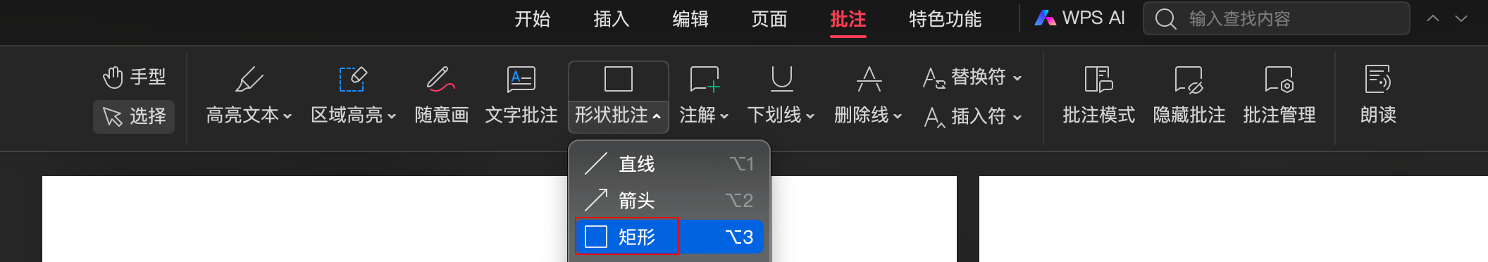 使用你喜欢的PDF软件添加矩形批注,如下是WPS的矩形批注工具位置。