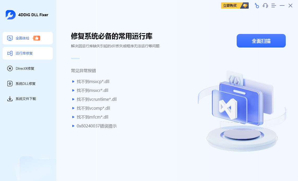 解决因运行库缺失引起的dll丢失或程序无法运行等问题。