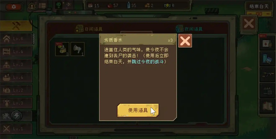 随着天数的增加,僵尸的强度也会提高,白天的时候也会像天气预报的一样对某种僵尸的尸潮提示,不仅如此,这些僵尸还带进化的,各种各样的带特殊能力的僵尸会导致生存异常艰难,如果身上有劣质的香水,喷洒后可以躲过一次晚上的防守。