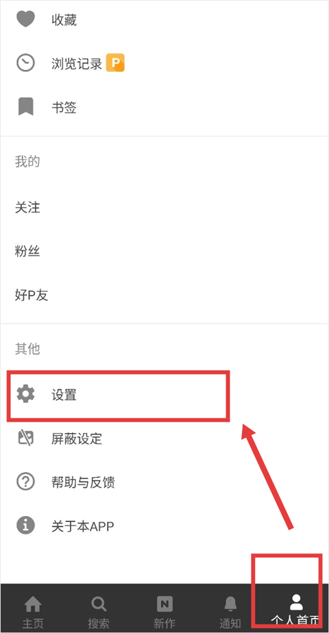 1、打开pixiv官方版App,进入【个人首页】,点击【设置】。