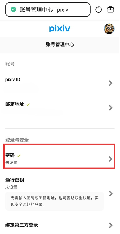 pixiv官方版App如何设置密码