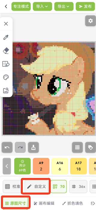 5、颂拼豆App会自动生成像素图纸,这里不建议使用自动生成的图纸,会有很大的色差。