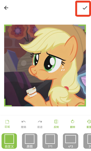 4、导入图片后你可以先编辑图片,改变图片的比例、反转等,弄好后点击右上角的【√】。