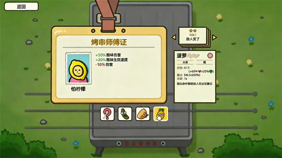 游戏在玩法上比较有趣的是把食材都进行了一定的分类,烤串师傅也会有对应的加成。比如肉大师、白菜棒分别对应的就是荤食流派和素食流派,此外还有辣、咸、酸三个流派的大师以及一个平平无奇的普通人。