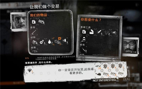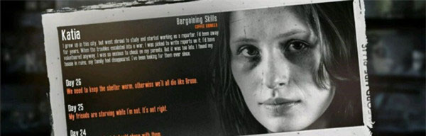 游戏通过黑白风格的画面和压抑的音乐,营造出战争中的无力感和无助感。玩家的选择会影响剧情发展,直面战争对人性的考验。游戏中有多个角色可供选择,每个角色都有独特的技能和属性,比如擅长砍价的凯蒂娜、速度快的帕夫列等。