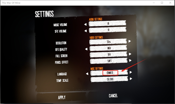 4、然后点击左侧箭头,将语言调整为CHINESE;