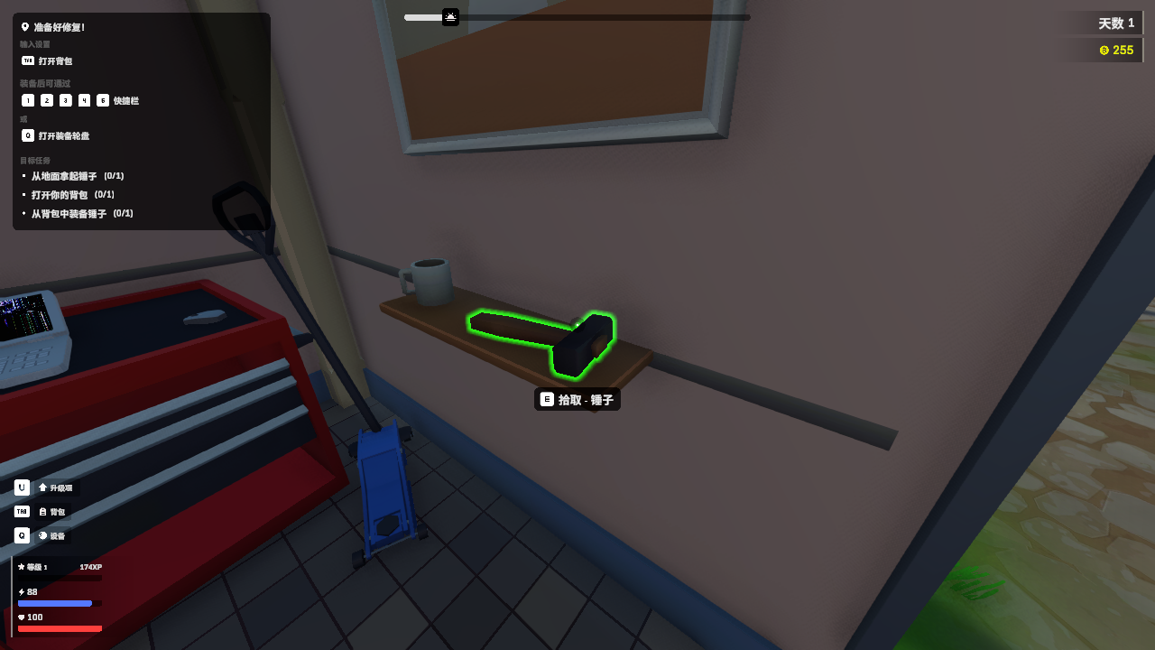 5、返回,来到一开始进入太平间右侧的角落就可以看到锤子,拿到后,点击“tab”打开背包装备锤子。