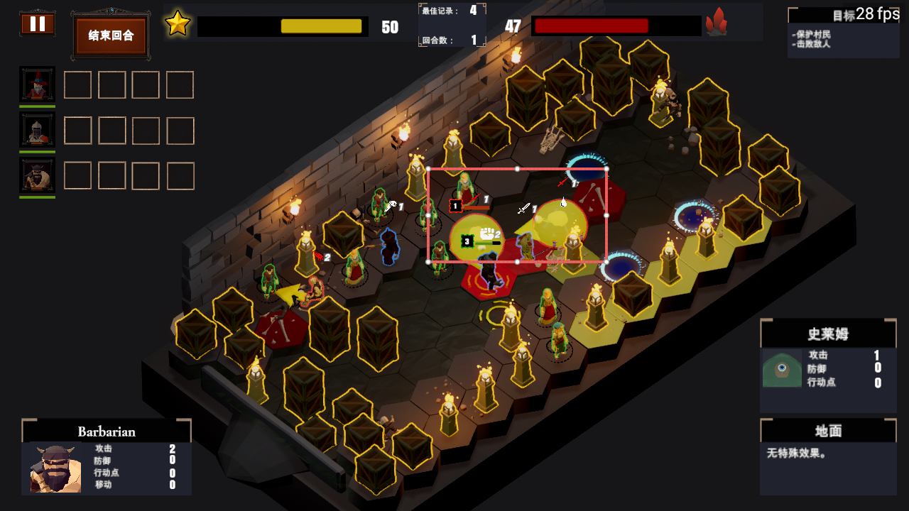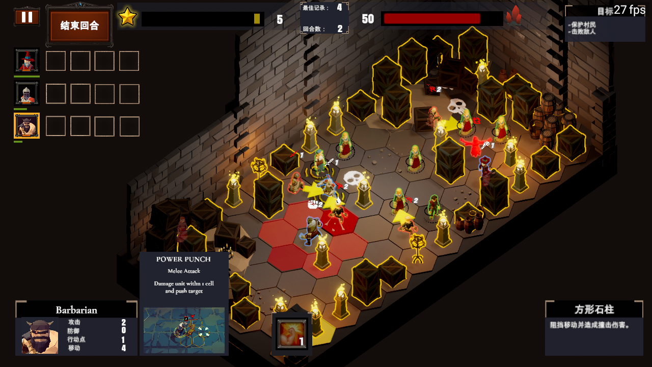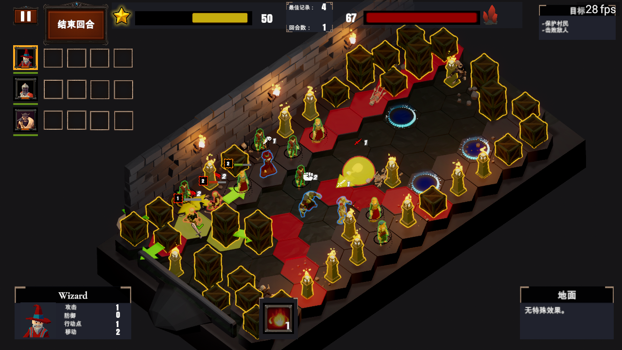 《地牢幻阵》是一款由LeeT Game开发的回合制策略游戏,玩家需要带领一支冒险小队深入地牢,解救被囚禁的村民并击败最终的魔王。游戏采用了经典的六边形方格战斗系统,玩家需要灵活运用地形、道具和角色技能来完成各种任务关卡。