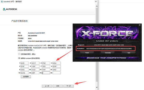 16、如图所示,将激活码复制到软件注册框中,点击【下一步】。