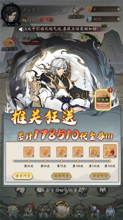 4、免费千抽:通关即送千连抽,灵宝升阶解锁满星红将!