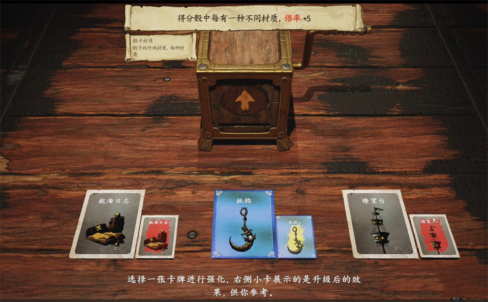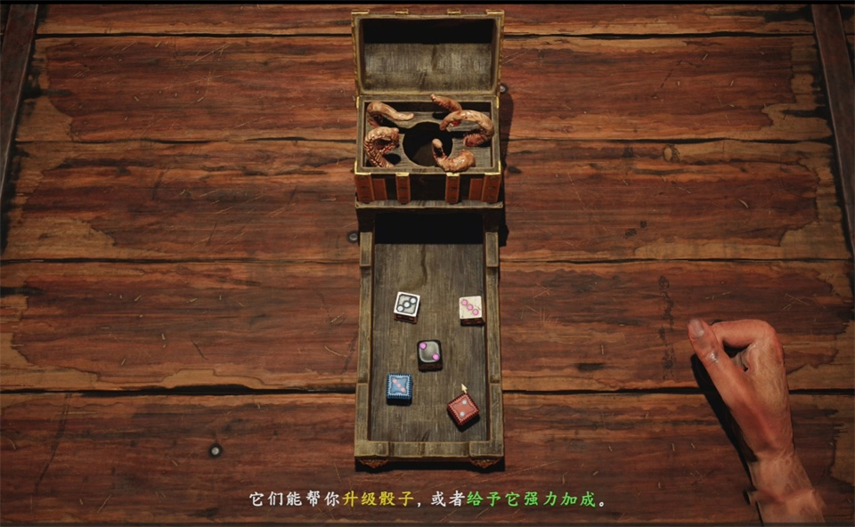 骰子收藏盒,这里可以把本局获取的骰子留到下一局使用,但是同时本局不能再使用该骰子,会替换为一个普通骰子。这里建议放个黄金骰子,下把开局就可以开始攒金币,游戏中金币的作用是很大的!