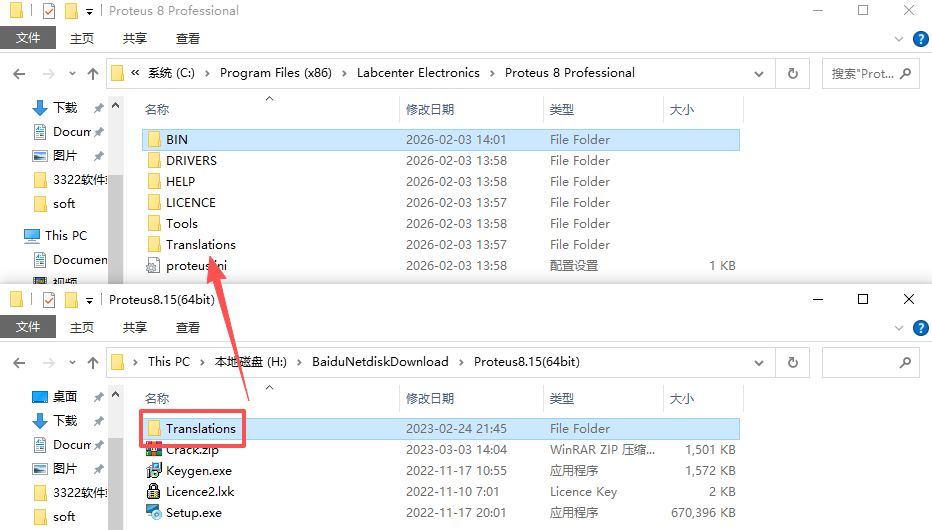 20、将安装包内的【Translations】文件复制粘贴至软件安装位置中的【Proteus 8 Professional】路径中。
