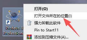 18、鼠标右击桌面【Proteus 8 Professional】图标选择【打开文件所在位置】。