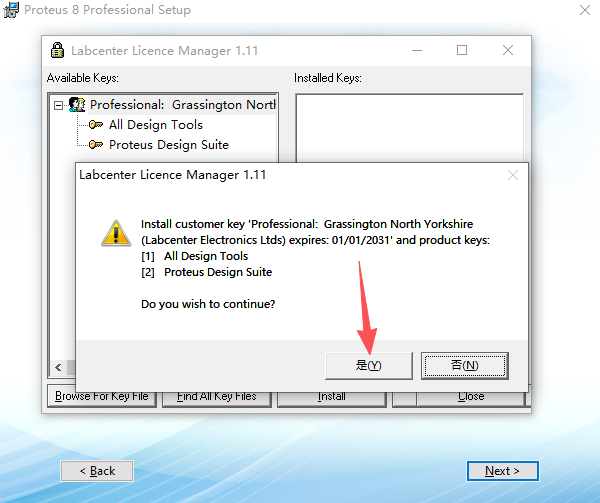 5、点击【Browse for key file】(若没有出现此弹窗,关闭后重新开始安装)。