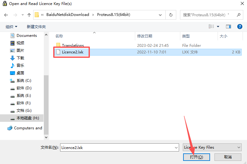 6、选择安装包解压后文件夹中的【Licence2.xlk】,点击【打开】。