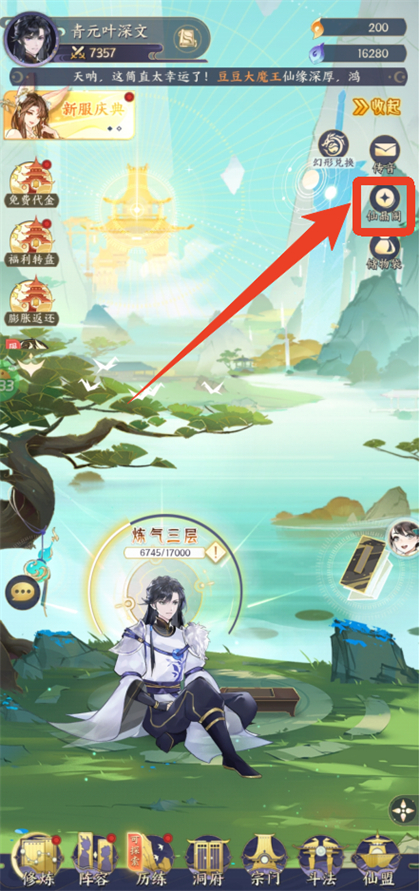 1、充值仙晶需要达到炼气三层,这个直接打一会主线就能达到了。