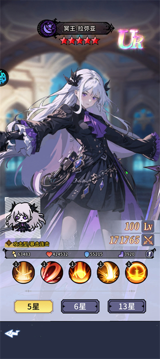 游戏中还有不少强力角色,比如攻击型的冥王-拉弥亚、防御型但高攻灼烧的黑堂,以及毒姬、夜神凛和幽幽子等,每个角色都有独特的技能和特点。主角进化玩法也很有趣,玩家可以提升主角的实力,失败还能获得材料卡用于进一步进化。