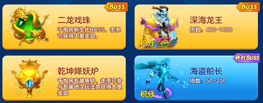 BOSS鱼种:斗战胜佛、玉皇大帝、深海龙王