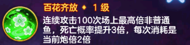 连续攻击100次场上最高倍非普通鱼,死亡概率提升3倍,每次消耗是当前炮倍2倍。