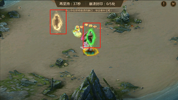 说明:老君发觉有一处封印出现了缺口,快去将其修补吧!该任务比较简单,哪里亮了点哪里即可修复缺口,指定时间内只要不漏5次缺口即可完成。随着时间推移后续缺口会出现的越来越多,一个缺口大概持续8s左右,大家前期尽量不要漏,后面即使漏几个也没关系,把握好的话后面几秒的时间不操作也是可以的。甲级乙级均有,甲级要求坚持42s,乙级要求坚持27s。