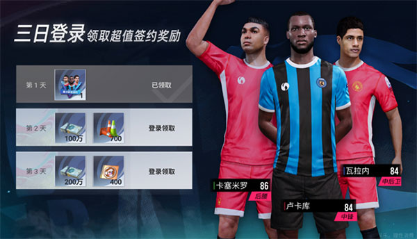 能带来稳定的阵容提升。首充三选一(中场绞肉机卡塞米罗、倒钩解围好手瓦拉内、头球达人卢卡库),都是非常实用的球员。萌新们可以先将手头的招募券用完,根据自己初始阵容,选择球员。