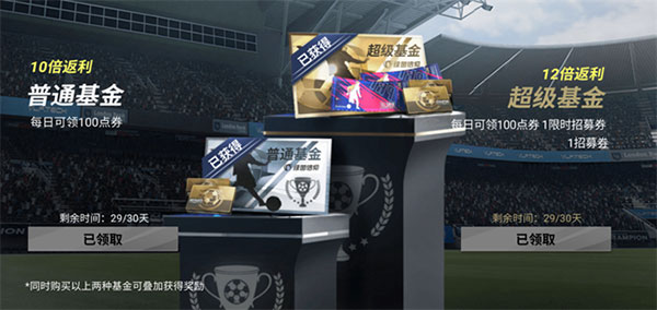 与通行证一样,是玩家稳赚不赔的充值选择,普通基金售价30元,共可领3300点券;超级基金售价68元,一个月可以多领30张招募券和30张限时招募券。