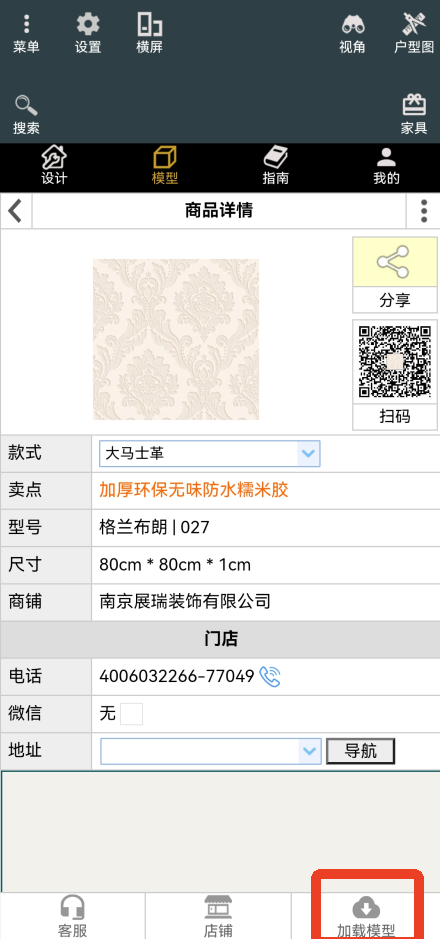 2、点击进入其中一个模型内,再点击右下角的【加载模型】,即可下载布置。