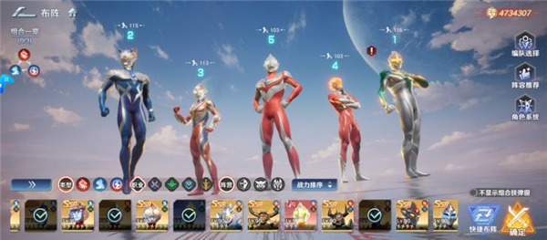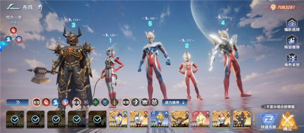 重氪玩家可瞄准付费专属角色闪耀型赛罗(648 档位获取,拉满培养成本较高),替换普通赛罗作为主 C,同时将强力型迪迦替换为镜子骑士(保留培养进度,作为辅助补充),阵容配置如下: