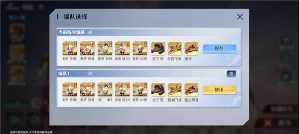 利用右侧“编队”功能可保存多套阵容方案,根据不同的战场形势和敌人特性,快速切换战术配置,随时打出针对性策略。