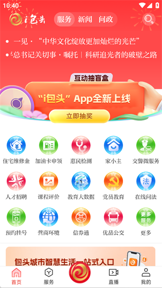 1、打开i包头App后,点击底部导航栏的「服务」,进入便民服务页面。