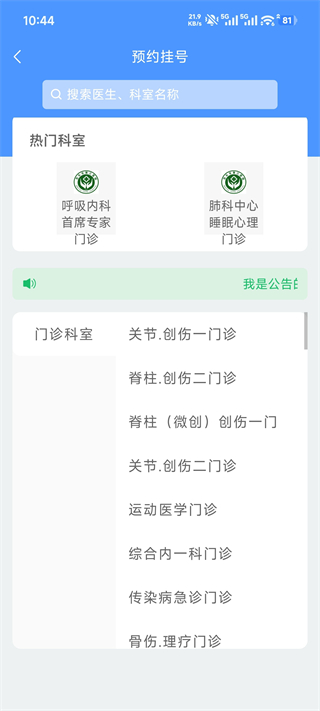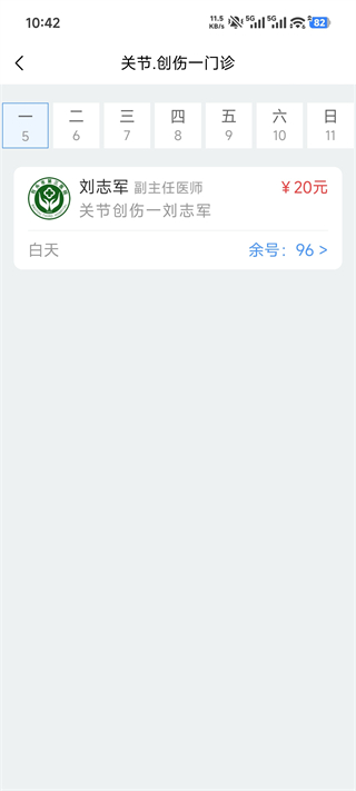 5、然后选择目标科室(比如 “关节・创伤一门诊”)