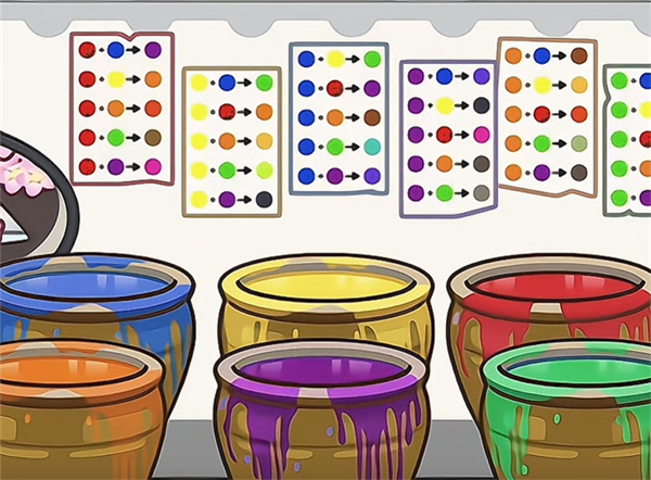 4、将布料放入染缸中染色,根据墙上的染色公式,可调配出不同颜色。