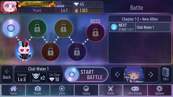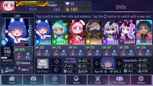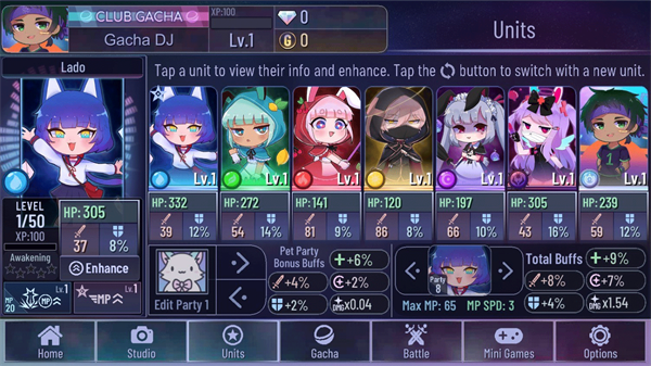 《加查俱乐部》的战斗模式才是游戏的核心。在这里,玩家可以通过组建一支拥有独特能力的角色团队来检验自己的战略能力,与对手进行回合制战斗。