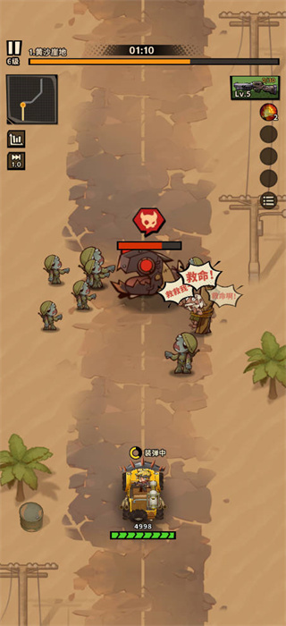 游戏里有很多细节设计得很用心。比如进入游戏后会播放剧情动画,虽然可以跳过,但第一次玩建议看完。战斗时载具会自动推进,玩家只需要调整角度开火就行。每次升级还能解锁新武器,关卡里还会随机出现被困人员需要解救,击败首领后就能解锁下一阶段。