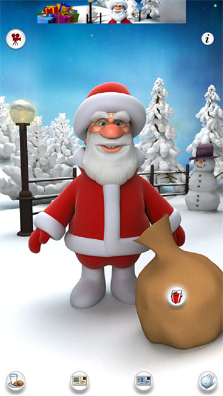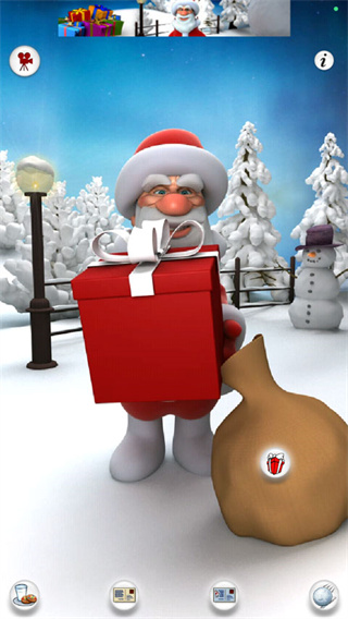 游戏有几个特色功能。首先可以探索圣诞老人的各种反应,比如点击他的鼻子、脖子或者肚子,看看他会有什么样的动作和表情。然后还能利用麦克风说话,听圣诞老人重复你的话,这种个性化的互动体验挺有意思的。另外还有礼物收集的功能,点击地面上的礼物袋,圣诞老人会随机拿出各种礼物,感觉像在拆盲盒一样,增加了很多乐趣。
