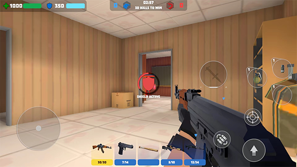 游戏中提供了丰富的武器选择,包括手枪、步枪、散弹枪、狙击枪等,每种武器都有不同的特点,玩家可以根据战斗需求灵活切换使用。游戏还加入了多人对战模式,支持实时竞技,大大提升了可玩性和挑战性。新手可以通过简单的教程快速上手,熟悉操作和武器使用。